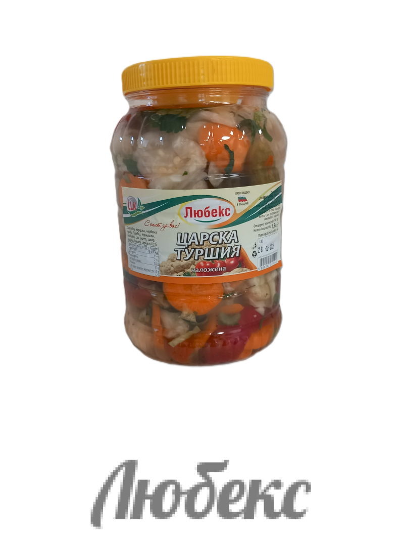 Царска туршия ЛЮБЕКС. Наложена, готова за консумация. Произведено с натурални продукти, без добавени консерванти по традиционна българска рецепта от ЛЮБЕКС.